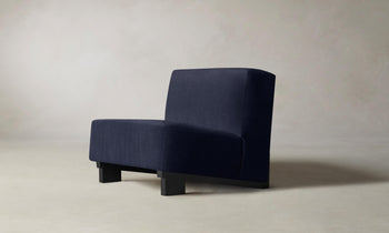The Remsen Chair’s bold proportions and streamlined silhouette are informed by Art Moderne design. It has a low-slung seat that sits at an angle atop a sculptural white oak base. Handcrafted in North Carolina.