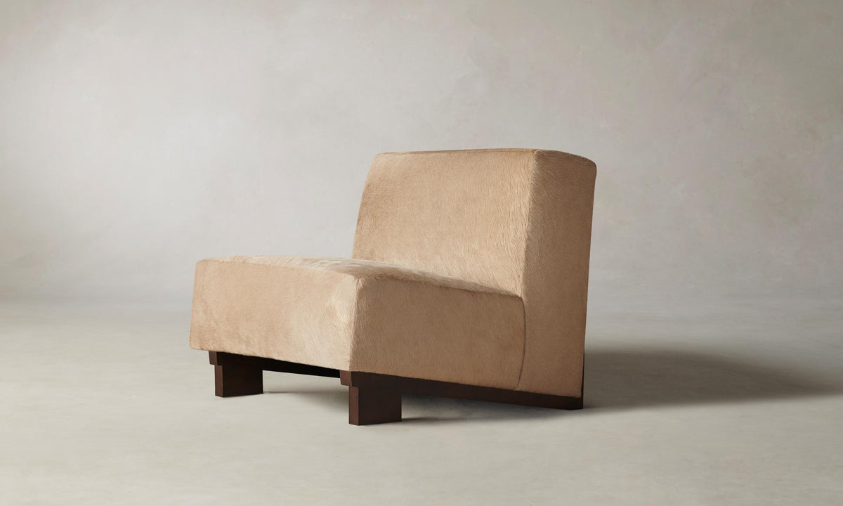 The Remsen Chair’s bold proportions and streamlined silhouette are informed by Art Moderne design. It has a low-slung seat that sits at an angle atop a sculptural white oak base. Handcrafted in North Carolina.