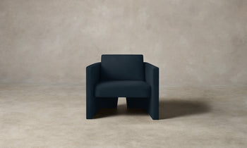 The Separa Chair is an architectural statement piece defined by a dramatic split at the back. It has wraparound arms and a waterfall seat complete with tight upholstery. Handcrafted in North Carolina.
