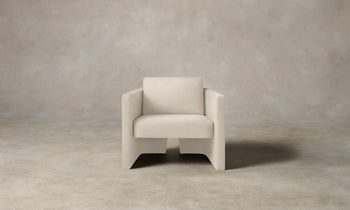 The Separa Chair is an architectural statement piece defined by a dramatic split at the back. It has wraparound arms and a waterfall seat complete with tight upholstery. Handcrafted in North Carolina.