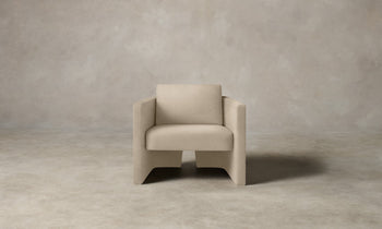 The Separa Chair is an architectural statement piece defined by a dramatic split at the back. It has wraparound arms and a waterfall seat complete with tight upholstery. Handcrafted in North Carolina.