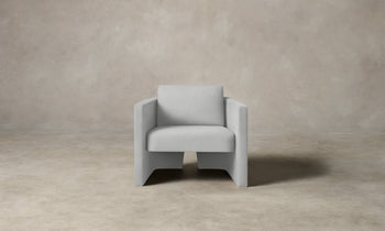 The Separa Chair is an architectural statement piece defined by a dramatic split at the back. It has wraparound arms and a waterfall seat complete with tight upholstery. Handcrafted in North Carolina.