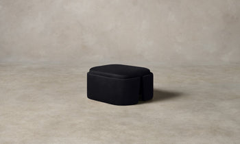 An architectural complement to the coordinating chair, the Separa Ottoman is defined by tight upholstery and dramatic slits at both sides. Handcrafted in North Carolina.