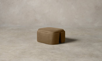 An architectural complement to the coordinating chair, the Separa Ottoman is defined by tight upholstery and dramatic slits at both sides. Handcrafted in North Carolina.