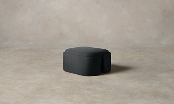 An architectural complement to the coordinating chair, the Separa Ottoman is defined by tight upholstery and dramatic slits at both sides. Handcrafted in North Carolina.
