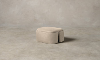 An architectural complement to the coordinating chair, the Separa Ottoman is defined by tight upholstery and dramatic slits at both sides. Handcrafted in North Carolina.