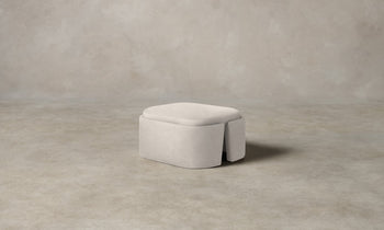 An architectural complement to the coordinating chair, the Separa Ottoman is defined by tight upholstery and dramatic slits at both sides. Handcrafted in North Carolina.