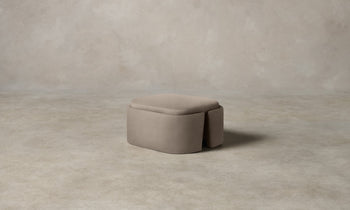 An architectural complement to the coordinating chair, the Separa Ottoman is defined by tight upholstery and dramatic slits at both sides. Handcrafted in North Carolina.