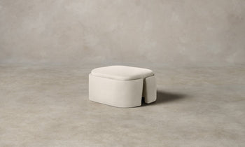 An architectural complement to the coordinating chair, the Separa Ottoman is defined by tight upholstery and dramatic slits at both sides. Handcrafted in North Carolina.