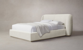 With its voluminous form and sweeping curves, the Smith Bed is a statement piece for the bedroom. Its enveloping shelter headboard and frame are fully upholstered and set upon a plinth base. Handcrafted in North Carolina.