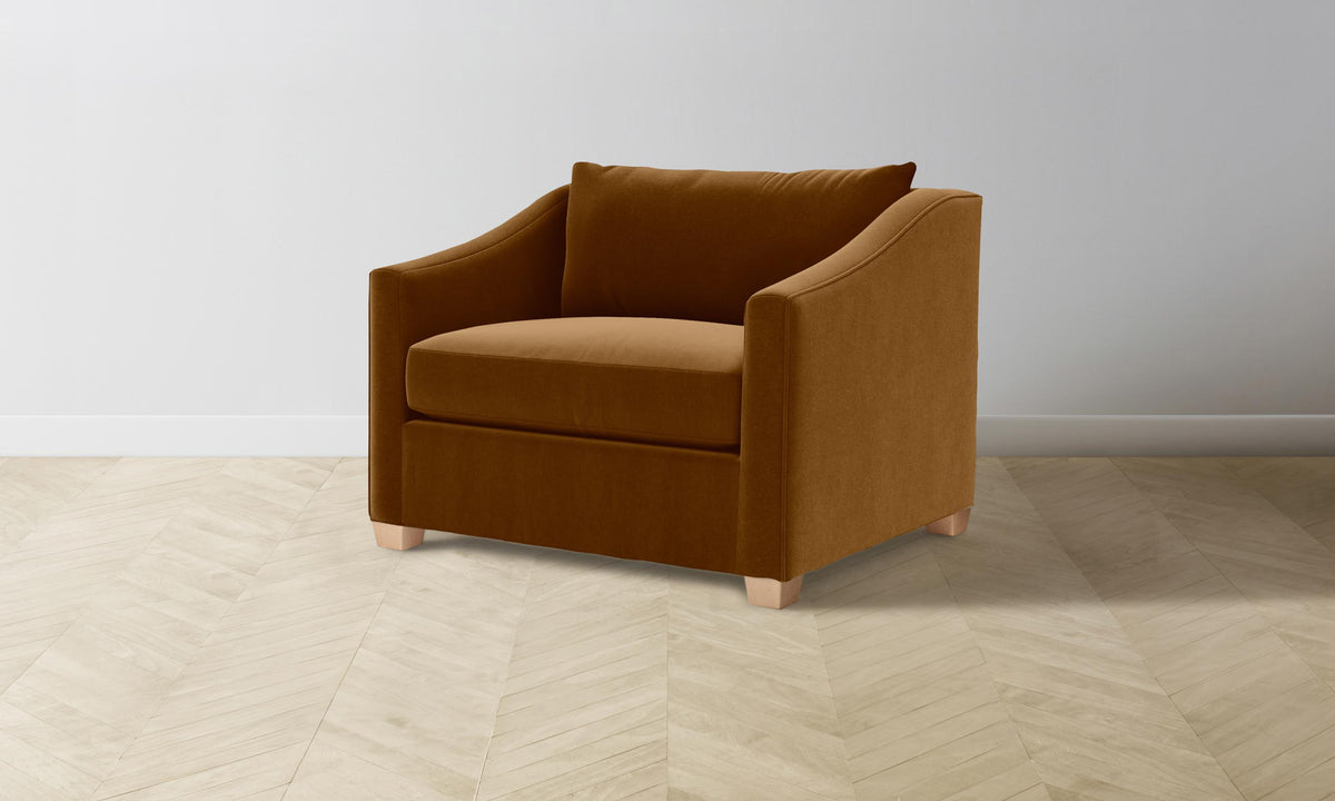 At once contemporary and classic, the Sullivan Chair-and-a-Half is a timeless addition to the home. It has a deep seat framed by sloped shelter arms and sits atop trapezoidal legs for a bold touch. Handcrafted in North Carolina.