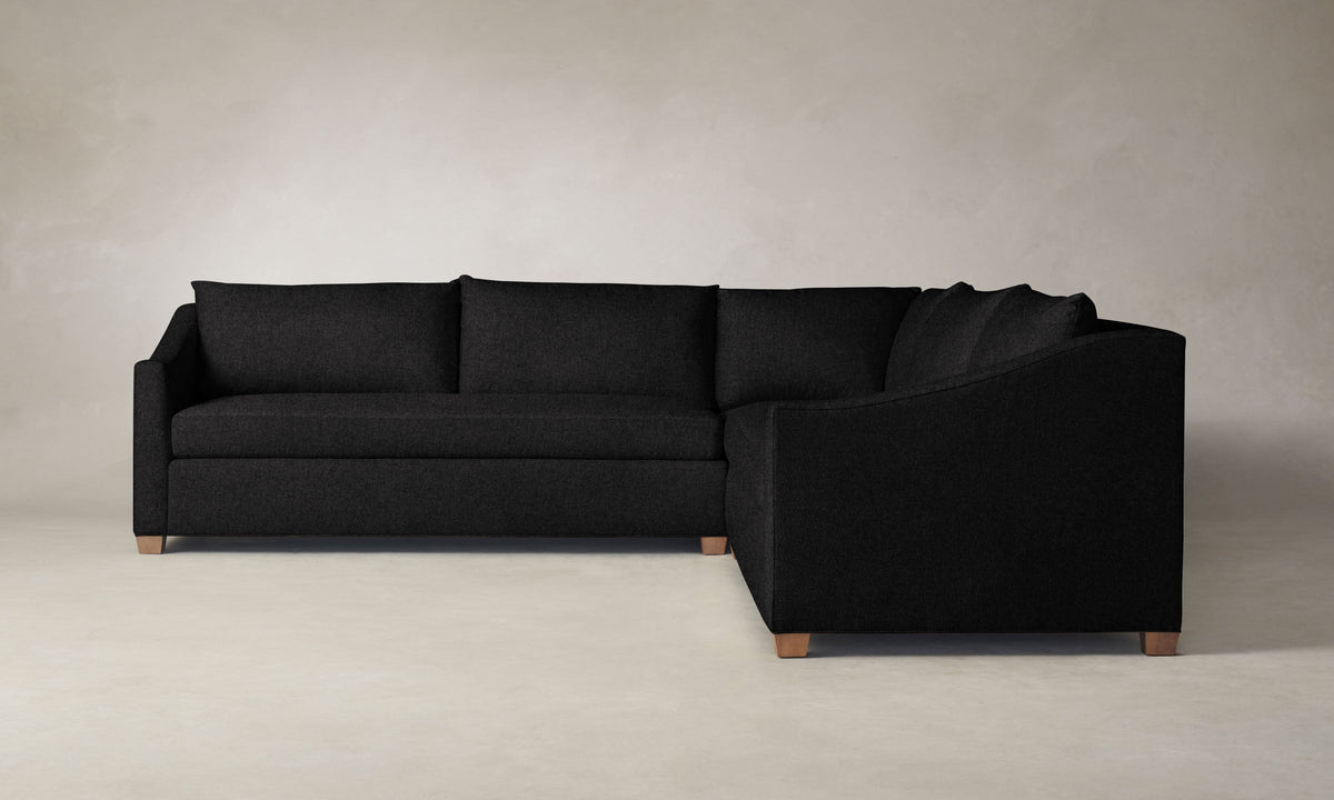 At once contemporary and classic, the Sullivan Sectional is a timeless addition to the home. It has a deep seat framed by sloped shelter arms and sits atop trapezoidal legs for a bold touch. Handcrafted in North Carolina.