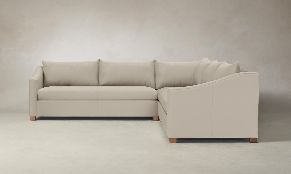 At once contemporary and classic, the Sullivan Sectional is a timeless addition to the home. It has a deep seat framed by sloped shelter arms and sits atop trapezoidal legs for a bold touch. Handcrafted in North Carolina.