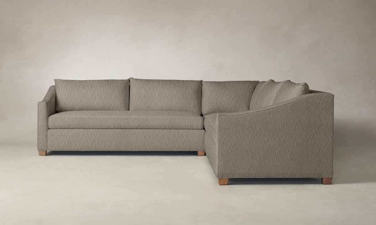 At once contemporary and classic, the Sullivan Sectional is a timeless addition to the home. It has a deep seat framed by sloped shelter arms and sits atop trapezoidal legs for a bold touch. Handcrafted in North Carolina.