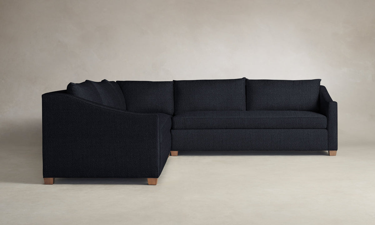 At once contemporary and classic, the Sullivan Sectional is a timeless addition to the home. It has a deep seat framed by sloped shelter arms and sits atop trapezoidal legs for a bold touch. Handcrafted in North Carolina.
