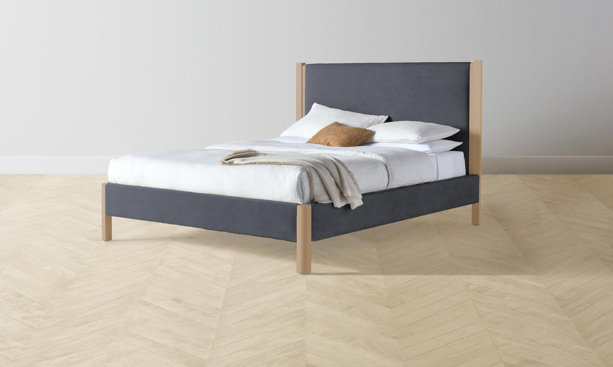 The Thompson Bed is an expression of graceful simplicity. It has an ash frame with rounded corners and neat upholstery along the headboard, foot rail, and sides, creating a perfect balance of rigidity and softness. Handcrafted in North Carolina.