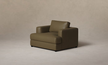 With bold proportions and a low-lying silhouette, the Varick Chair-and-a-Half makes a contemporary statement. Its generous arms and deep seat envelop the body, while impeccable upholstery offers a sleek finish. Handcrafted in North Carolina.