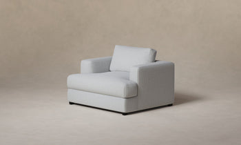 With bold proportions and a low-lying silhouette, the Varick Chair-and-a-Half makes a contemporary statement. Its generous arms and deep seat envelop the body, while impeccable upholstery offers a sleek finish. Handcrafted in North Carolina.