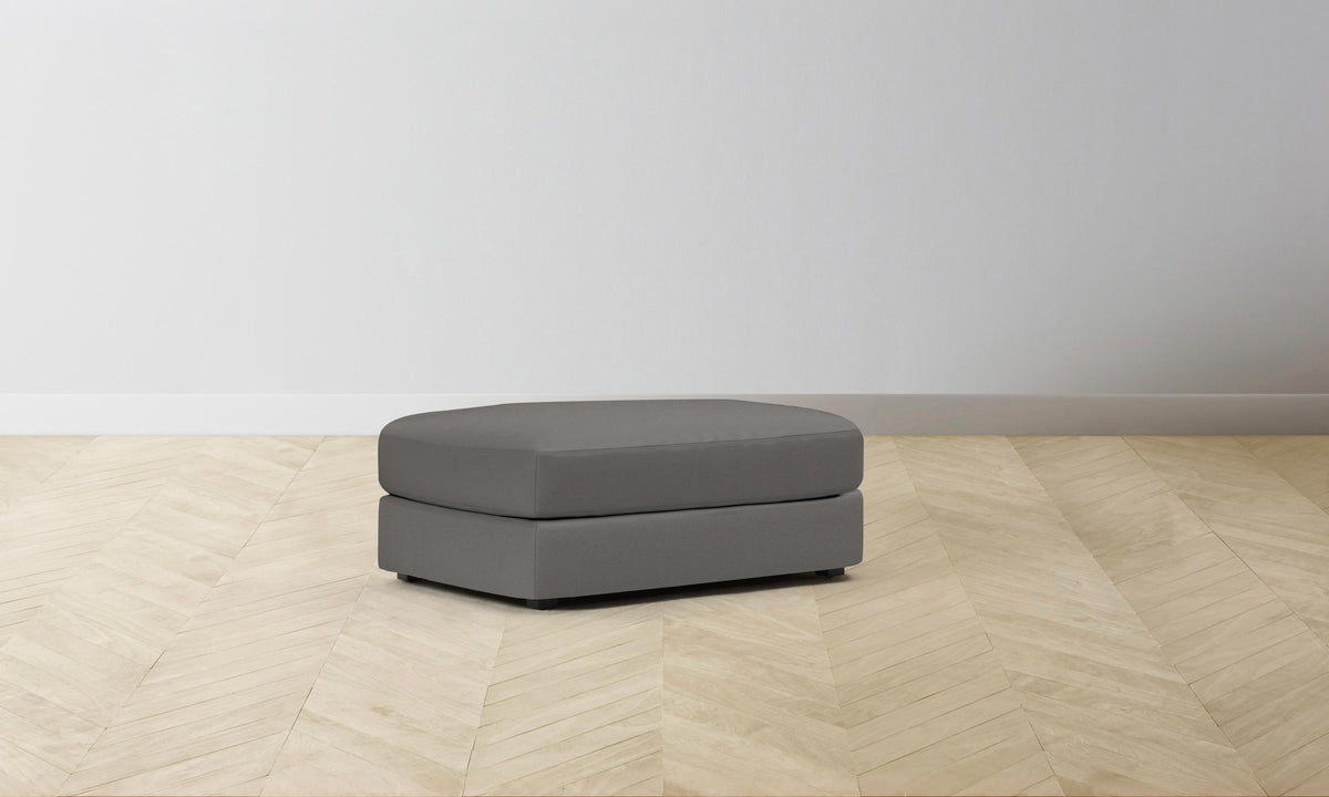 With bold proportions and a low-lying silhouette, the Varick Ottoman makes a contemporary statement. Its plush cushion is impeccably upholstered for a sleek finish. Handcrafted in North Carolina.