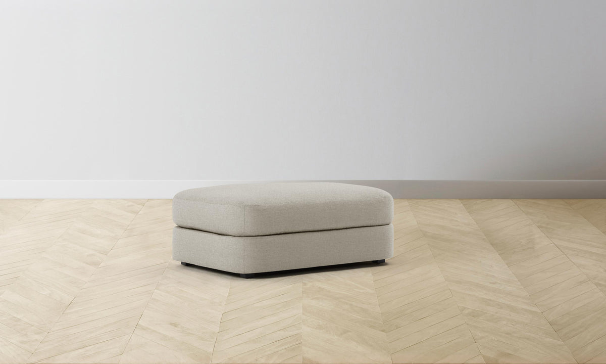 With bold proportions and a low-lying silhouette, the Varick Ottoman makes a contemporary statement. Its plush cushion is impeccably upholstered for a sleek finish. Handcrafted in North Carolina.
