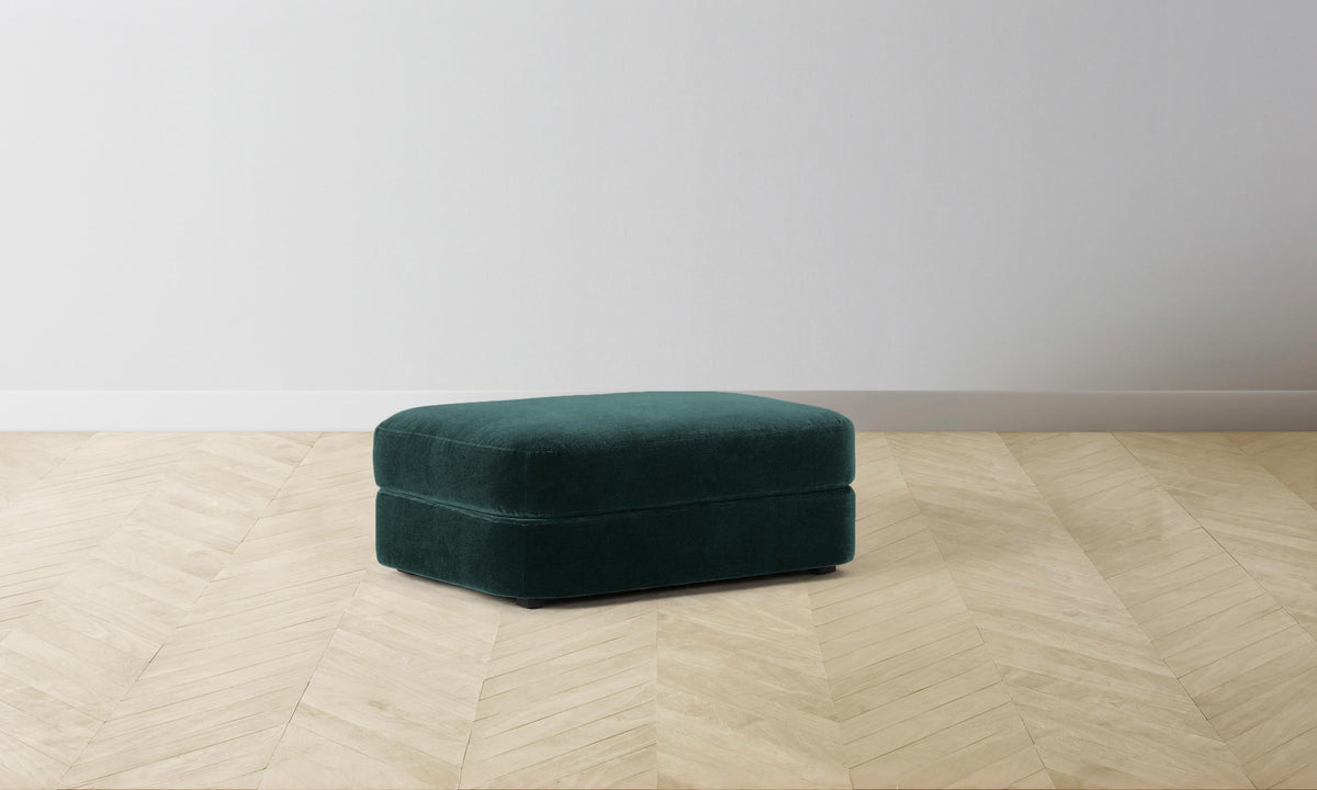 With bold proportions and a low-lying silhouette, the Varick Ottoman makes a contemporary statement. Its plush cushion is impeccably upholstered for a sleek finish. Handcrafted in North Carolina.