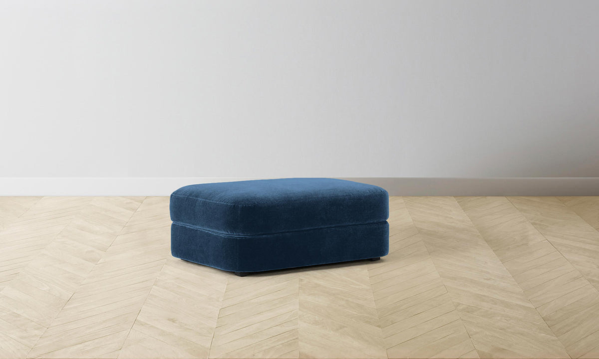 With bold proportions and a low-lying silhouette, the Varick Ottoman makes a contemporary statement. Its plush cushion is impeccably upholstered for a sleek finish. Handcrafted in North Carolina.