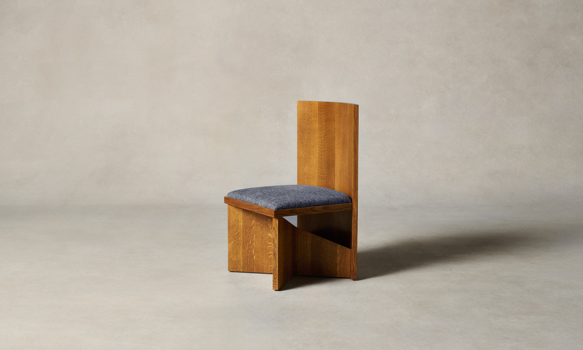 The Venice Chair is a study in contrasts. The softness of its curved back and upholstered seat is balanced by its angular base, where a void welcomes conversation between light and shadow. Handcrafted at a family-owned workroom in upstate New York.