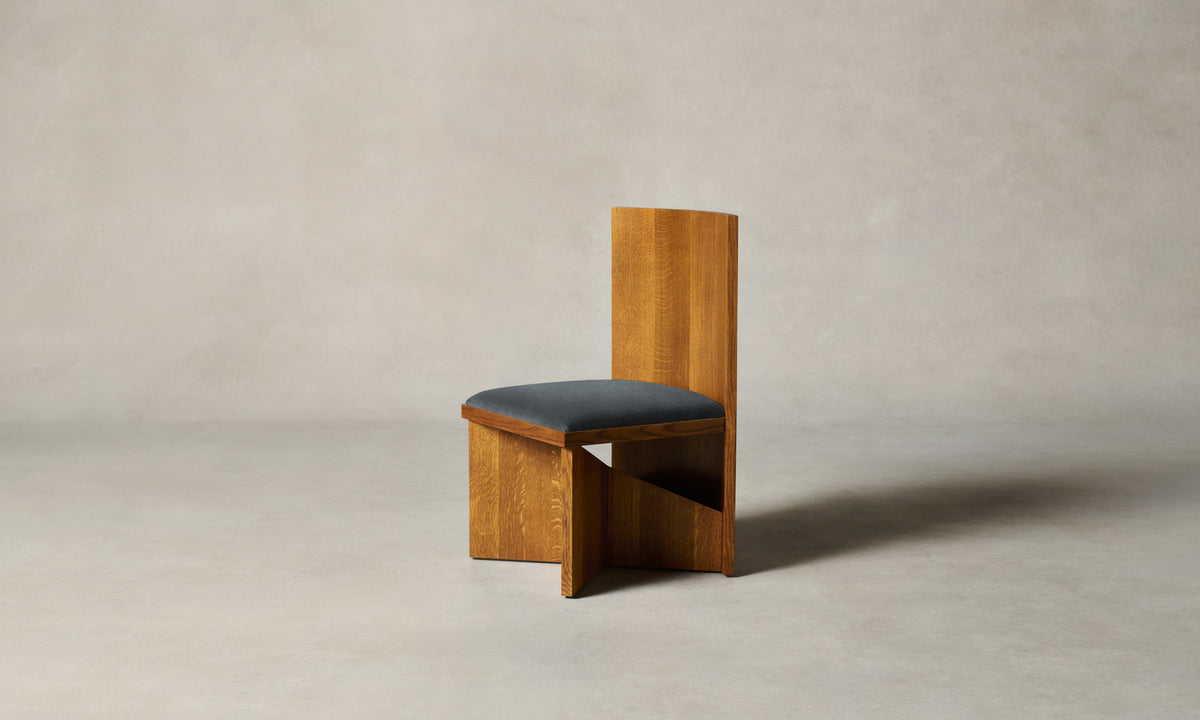 The Venice Chair is a study in contrasts. The softness of its curved back and upholstered seat is balanced by its angular base, where a void welcomes conversation between light and shadow. Handcrafted at a family-owned workroom in upstate New York.