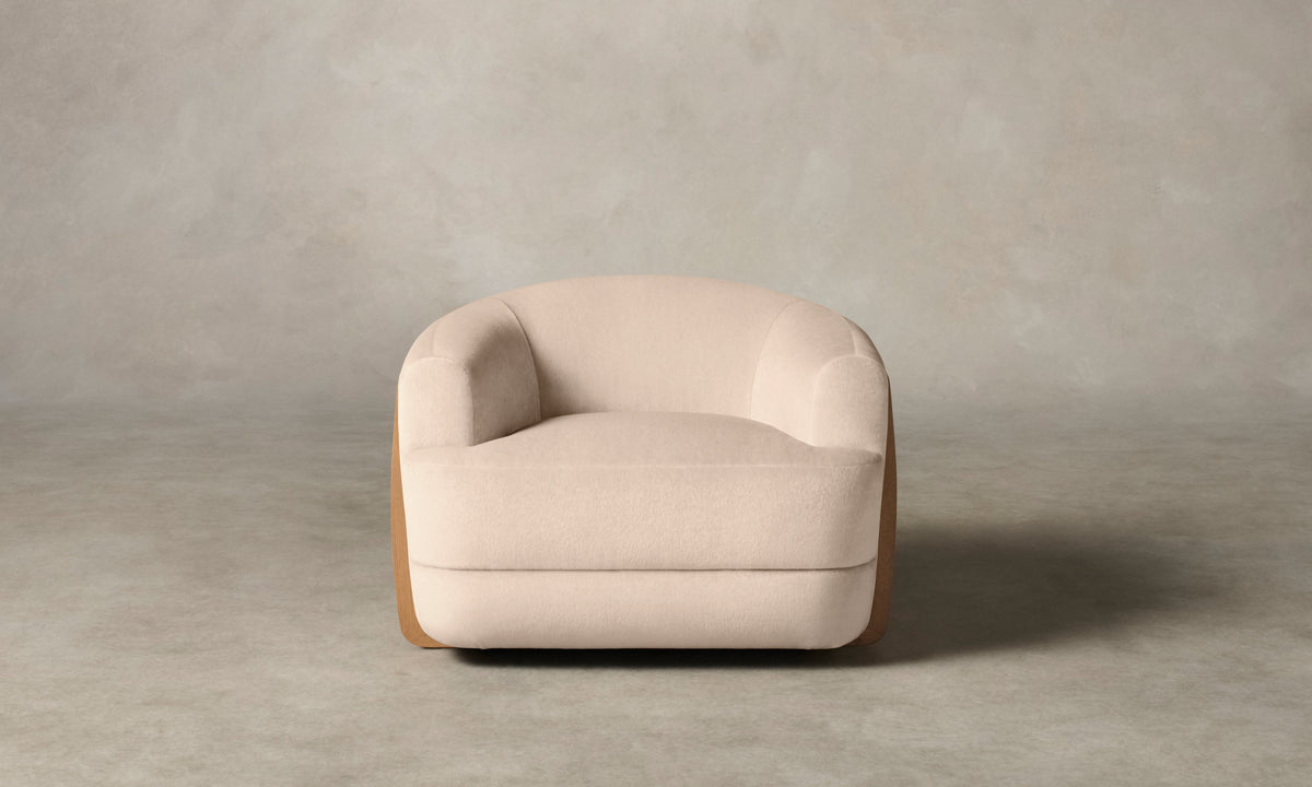 The Vera Chair pays homage to the soft and sensual lines of early Art Deco seating. It has smooth wraparound arms and a voluminous seat mounted on planar legs. Handcrafted in North Carolina.