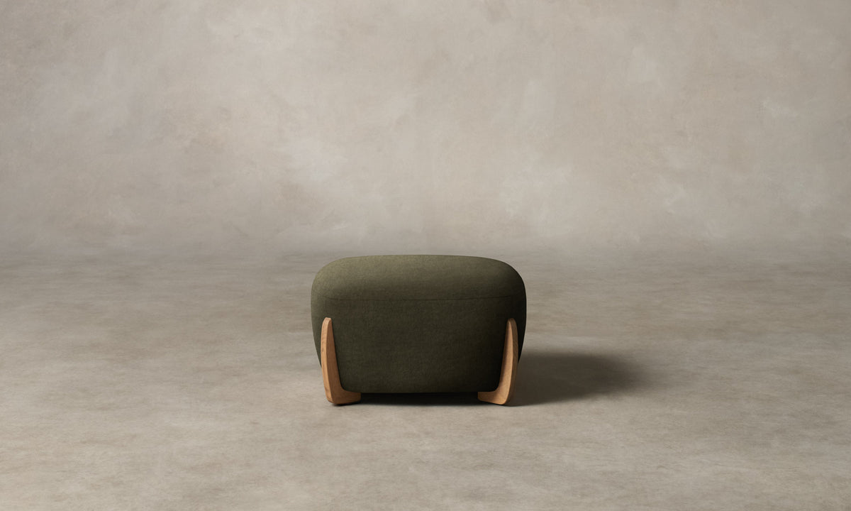 The Vera Ottoman pays homage to the soft and sensual lines of early Art Deco seating. It has a voluminous seat that is masterfully upholstered and mounted on planar legs. Handcrafted in North Carolina.