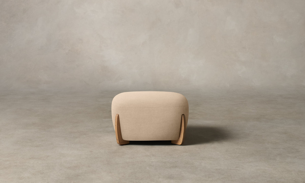 The Vera Ottoman pays homage to the soft and sensual lines of early Art Deco seating. It has a voluminous seat that is masterfully upholstered and mounted on planar legs. Handcrafted in North Carolina.