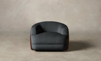 The Vera Swivel Chair pays homage to the soft and sensual lines of early Art Deco seating. It has smooth wraparound arms and a voluminous seat mounted on a swivel base. Handcrafted in North Carolina.