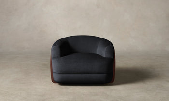 The Vera Swivel Chair pays homage to the soft and sensual lines of early Art Deco seating. It has smooth wraparound arms and a voluminous seat mounted on a swivel base. Handcrafted in North Carolina.