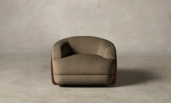 The Vera Swivel Chair pays homage to the soft and sensual lines of early Art Deco seating. It has smooth wraparound arms and a voluminous seat mounted on a swivel base. Handcrafted in North Carolina.