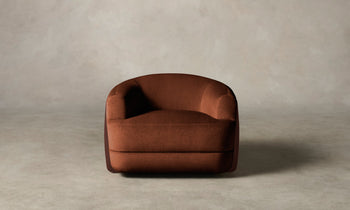 The Vera Swivel Chair pays homage to the soft and sensual lines of early Art Deco seating. It has smooth wraparound arms and a voluminous seat mounted on a swivel base. Handcrafted in North Carolina.