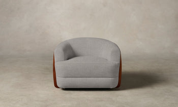 The Vera Swivel Chair pays homage to the soft and sensual lines of early Art Deco seating. It has smooth wraparound arms and a voluminous seat mounted on a swivel base. Handcrafted in North Carolina.