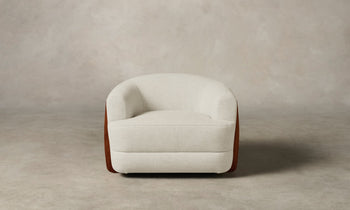 The Vera Swivel Chair pays homage to the soft and sensual lines of early Art Deco seating. It has smooth wraparound arms and a voluminous seat mounted on a swivel base. Handcrafted in North Carolina.