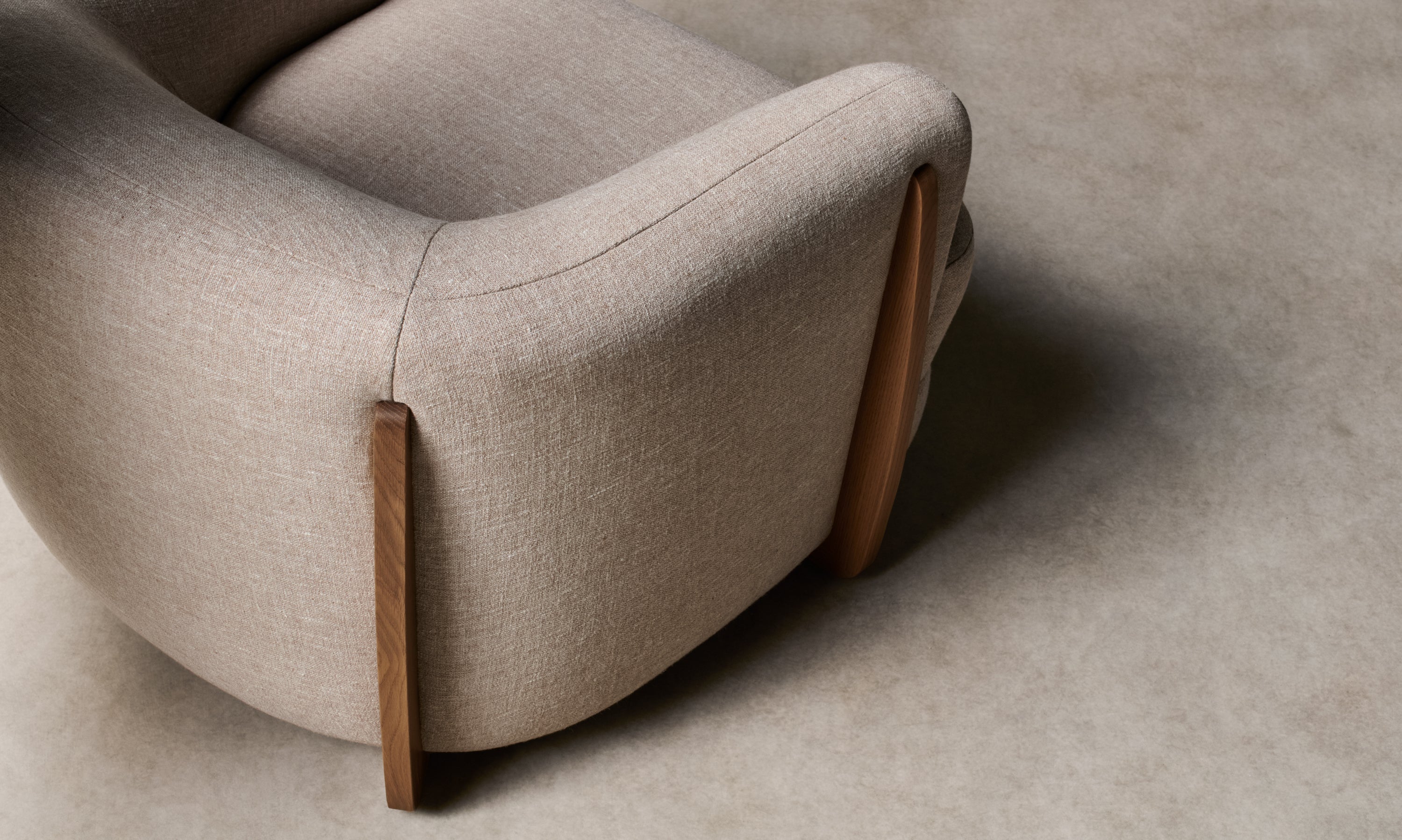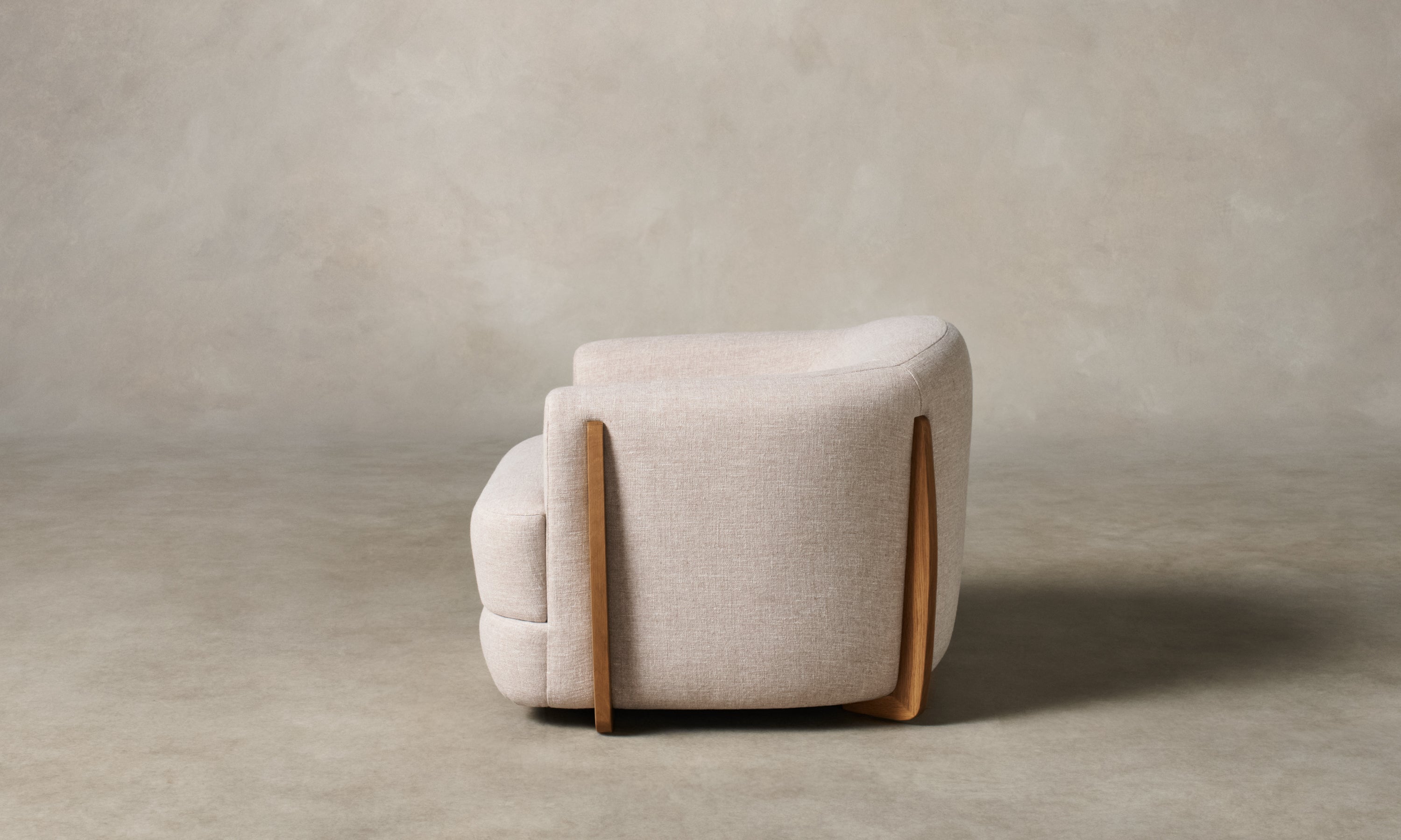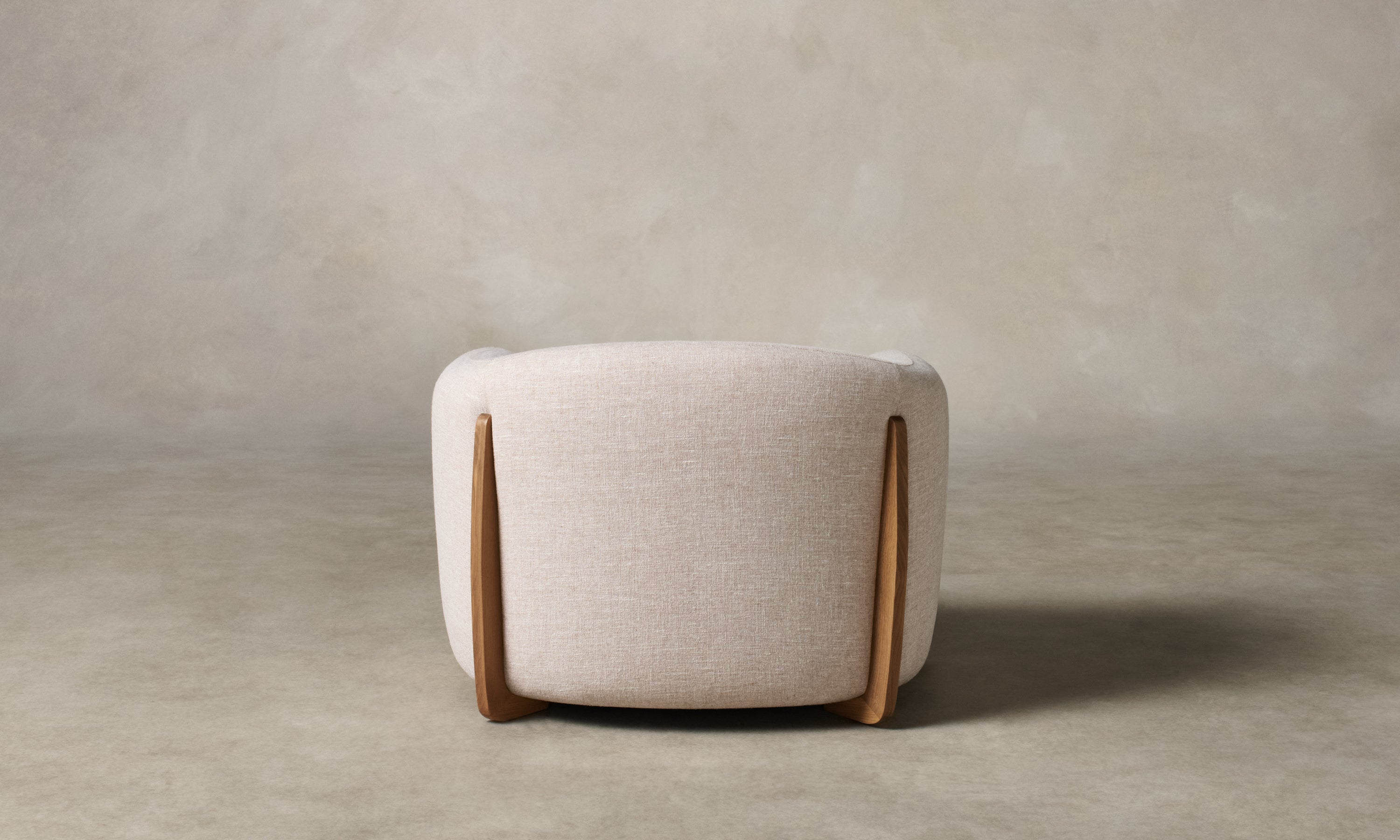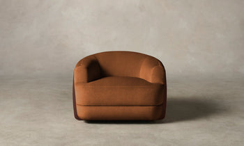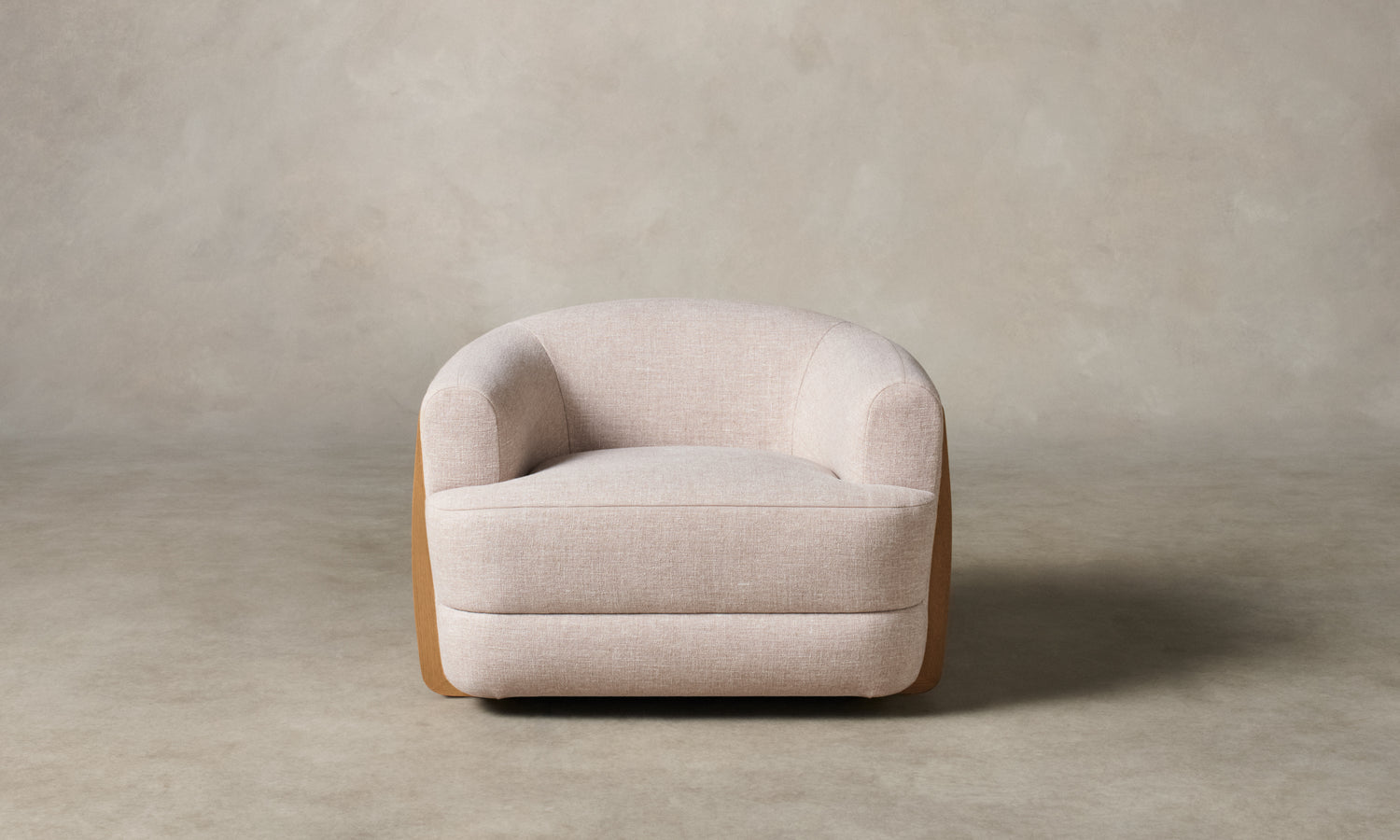 The Vera Swivel Chair pays homage to the soft and sensual lines of early Art Deco seating. It has smooth wraparound arms and a voluminous seat mounted on a swivel base. Handcrafted in North Carolina.