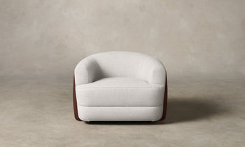 The Vera Swivel Chair pays homage to the soft and sensual lines of early Art Deco seating. It has smooth wraparound arms and a voluminous seat mounted on a swivel base. Handcrafted in North Carolina.