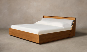 Rectilinear in form and rigid in materiality, the Verne Bed is a bold centerpiece for the bedroom. It has a white oak plywood frame and headboard accented with a contrasting bolster that adds a touch of softness. Handcrafted in New York.