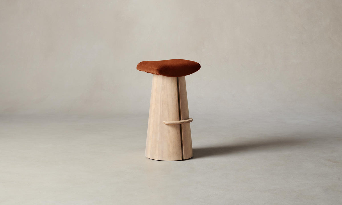 A contemporary interpretation of a classic saddle stool, the Weston has a contoured seat and sculptural base with a slit down the center that welcomes a whisper of light to stream through. Handcrafted at a family-owned workroom in upstate New York.