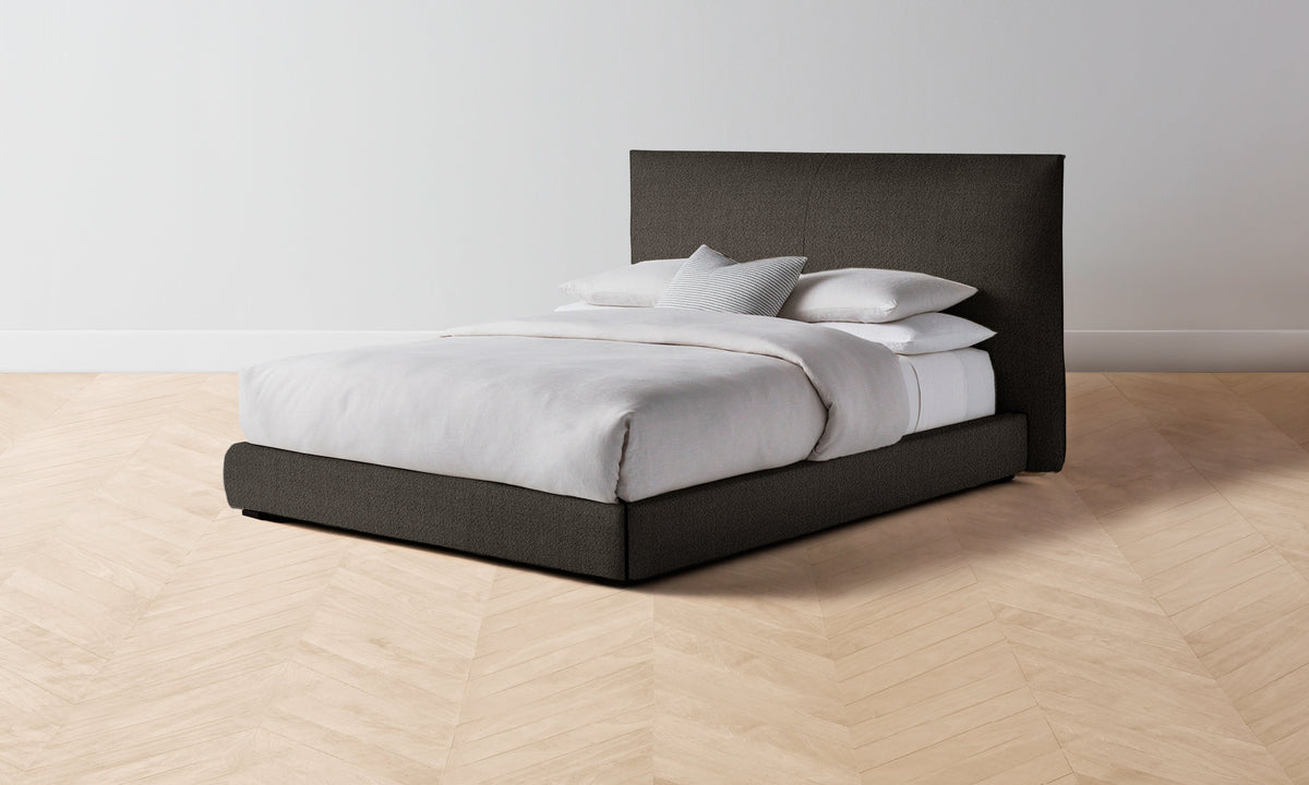 The Wythe Bed achieves a perfect balance of ease and sophistication. It features a laid-back, low profile and extended headboard traced with flange seams. Handcrafted in North Carolina.