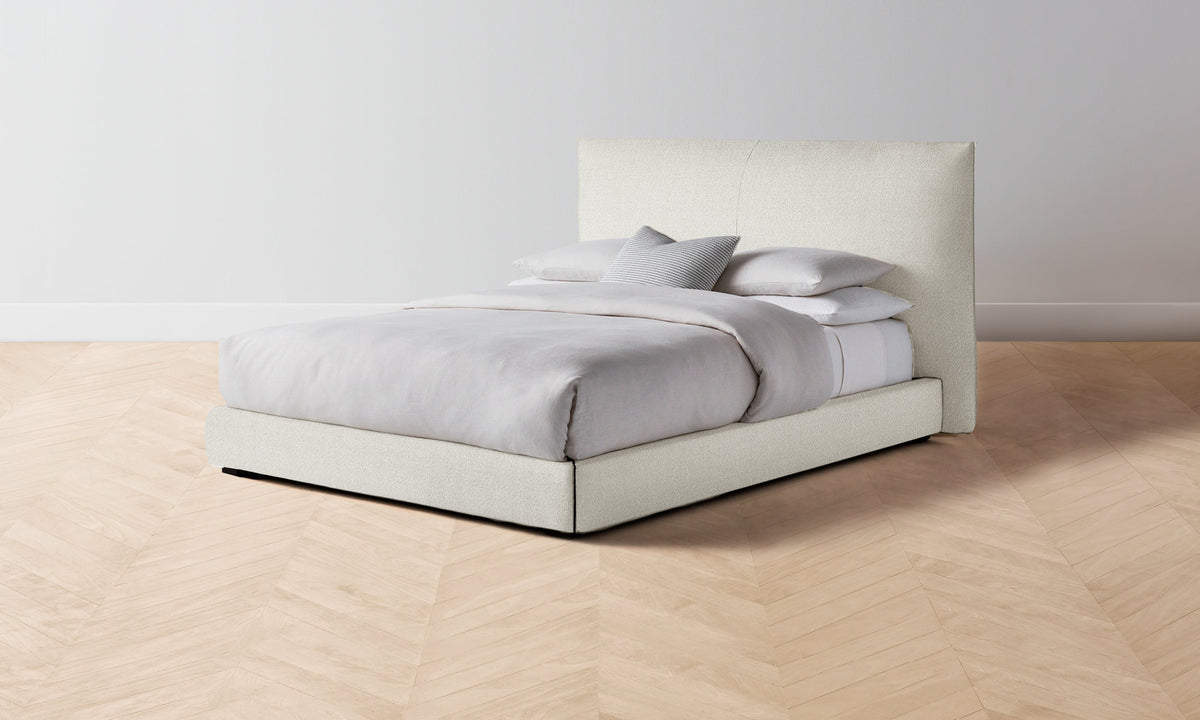 The Wythe Bed achieves a perfect balance of ease and sophistication. It features a laid-back, low profile and extended headboard traced with flange seams. Handcrafted in North Carolina.
