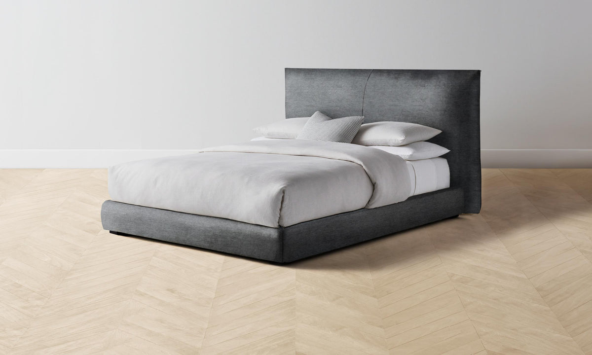 The Wythe Bed achieves a perfect balance of ease and sophistication. It features a laid-back, low profile and extended headboard traced with flange seams. Handcrafted in North Carolina.