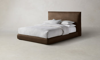 The Wythe Bed achieves a perfect balance of ease and sophistication. It features a laid-back, low profile and extended headboard traced with flange seams. Handcrafted in North Carolina.