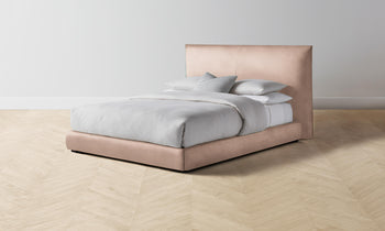 The Wythe Bed achieves a perfect balance of ease and sophistication. It features a laid-back, low profile and extended headboard traced with flange seams. Handcrafted in North Carolina.