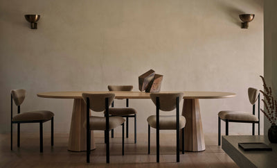 Drawing inspiration from mid-20th-century organic modernism, the Cooper Dining Chair merges smooth curves and straight lines. Its steel frame supports a contoured seat, creating interplay between softness and structure. Handcrafted in North Carolina.